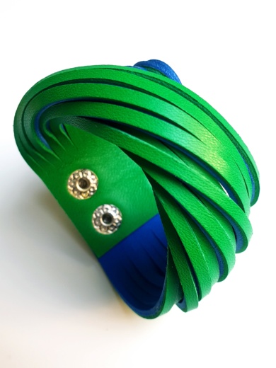 Fűzöld és királykék, csavart, bőr karkötő