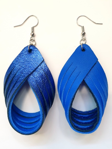 Metál kék és matt kék, csepp alakú, bőr fülbevaó